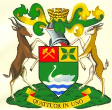 The blazon of the arms granted to Roodepoort by the Administrator of the Transvaal on 01 July 1964 and subsequently registered by the South African Bureau of Heraldry on 20 February 1968 is as follows: