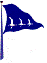 blue, with three white flying geese flying away from the hoist, parallel to the